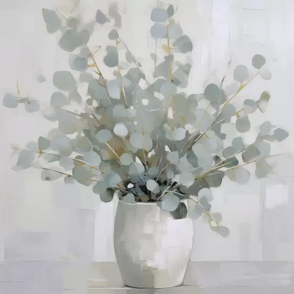 Poster Ramas de eucalipto en un jarrón, pintura de imitación. f46713