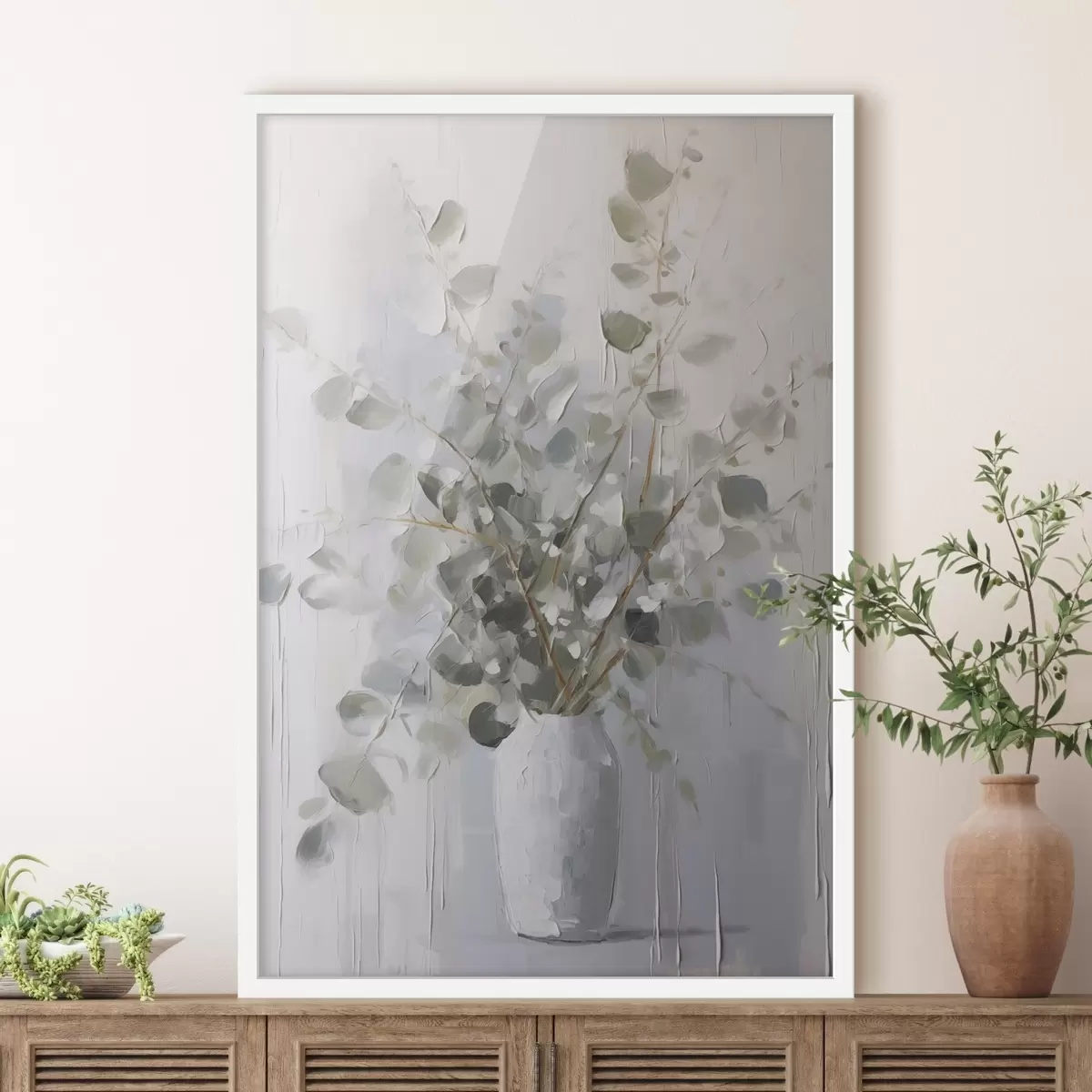 Poster Ramas con follaje en un jarrón, pintura de imitación. Nr f46720