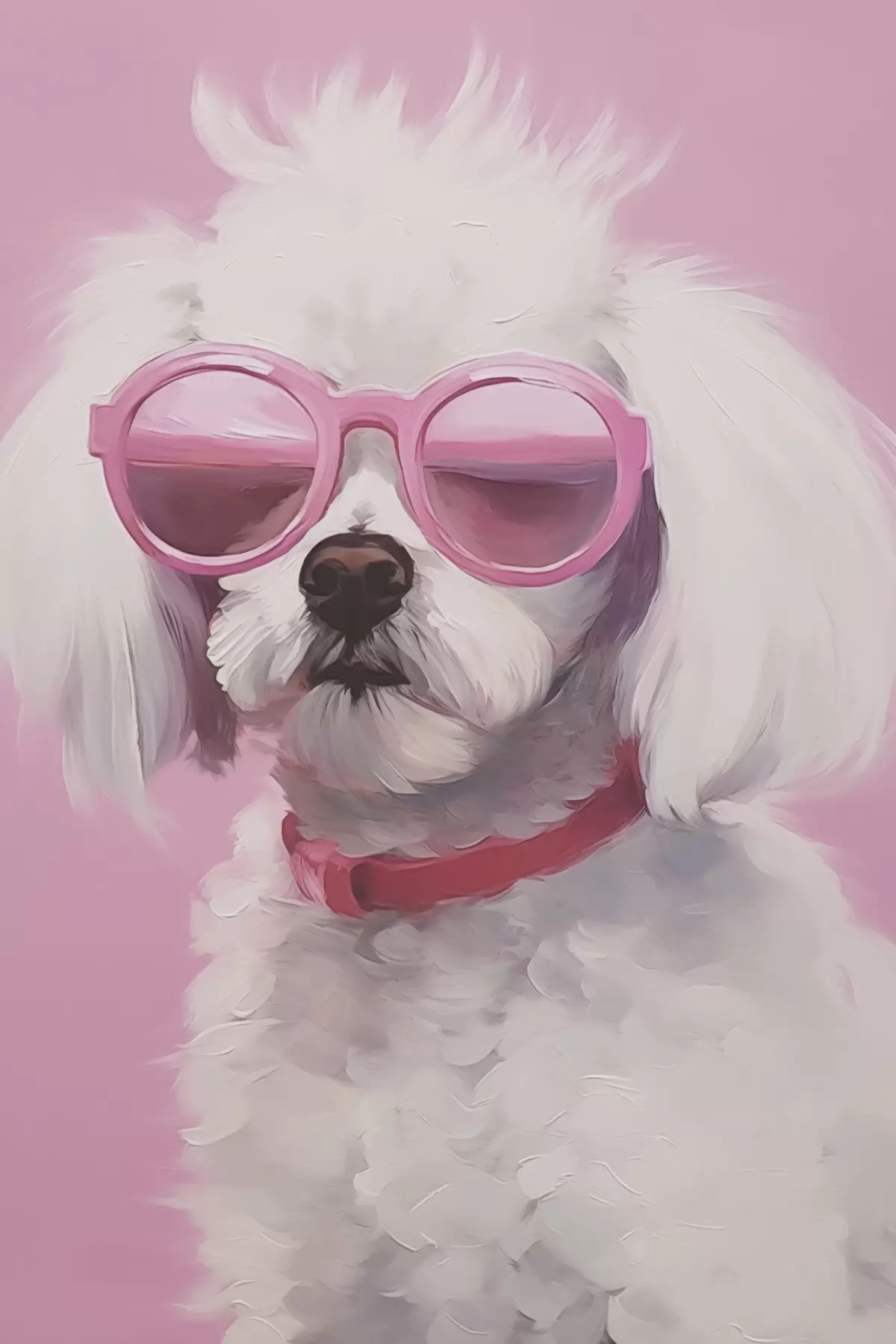 Poster Un perro pequeño con gafas es una imitación de la pintura. f46722