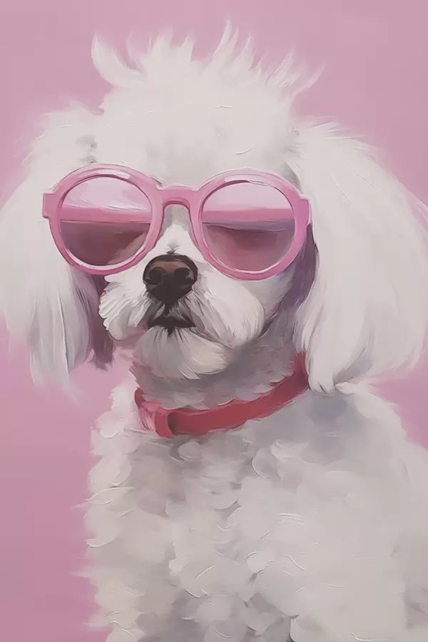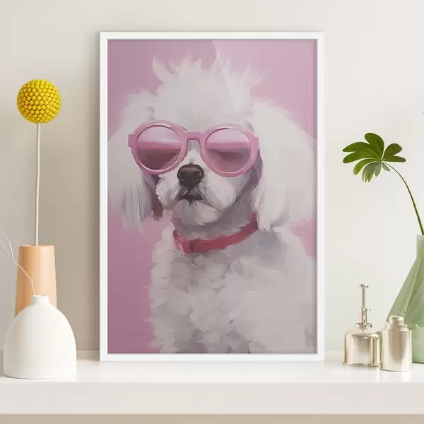 Poster Un perro pequeño con gafas es una imitación de la pintura. Nr f46722
