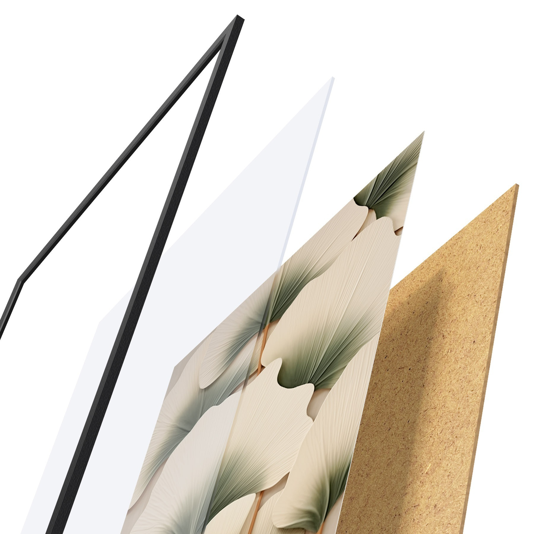 El póster consta de marco, plexiglás, imagen impresa y soporte de aglomerado. El póster puede colgarse inmediatamente en la pared gracias a los soportes de la parte posterior.