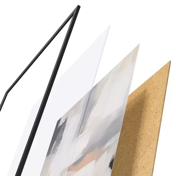 El póster consta de marco, plexiglás, imagen impresa y soporte de aglomerado. El póster puede colgarse inmediatamente en la pared gracias a los soportes de la parte posterior.