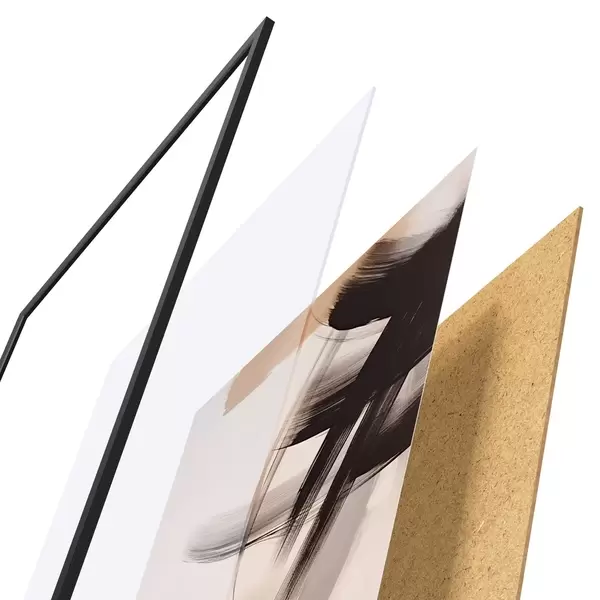 El póster consta de marco, plexiglás, imagen impresa y soporte de aglomerado. El póster puede colgarse inmediatamente en la pared gracias a los soportes de la parte posterior.