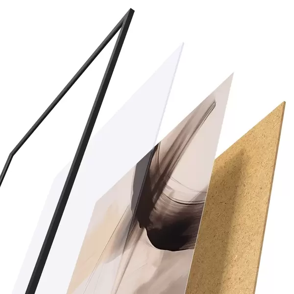 El póster consta de marco, plexiglás, imagen impresa y soporte de aglomerado. El póster puede colgarse inmediatamente en la pared gracias a los soportes de la parte posterior.