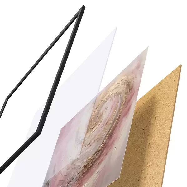 El póster consta de marco, plexiglás, imagen impresa y soporte de aglomerado. El póster puede colgarse inmediatamente en la pared gracias a los soportes de la parte posterior.