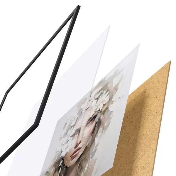 El póster consta de marco, plexiglás, imagen impresa y soporte de aglomerado. El póster puede colgarse inmediatamente en la pared gracias a los soportes de la parte posterior.