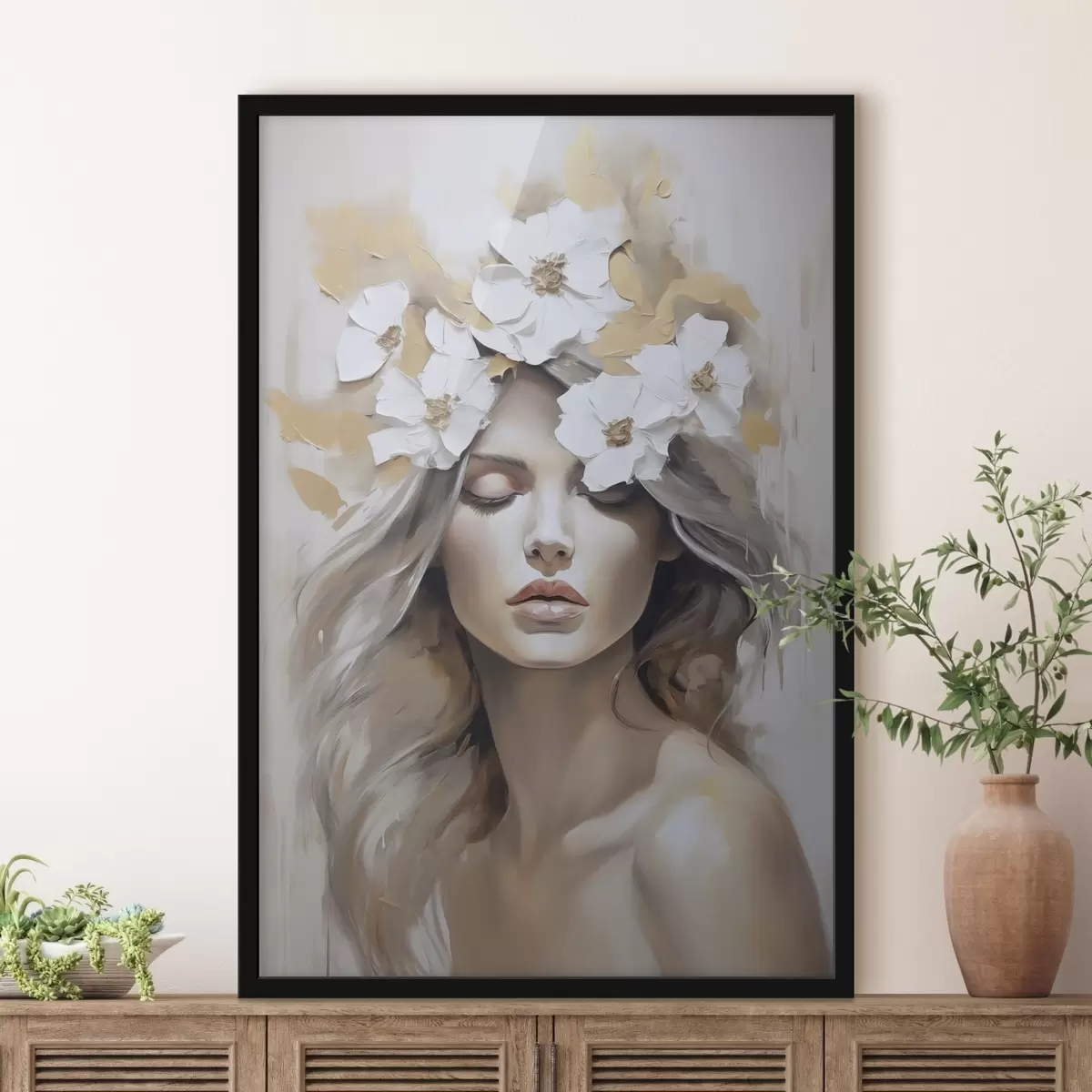 Poster Retrato abstracto de una chica con flores Nr f46757