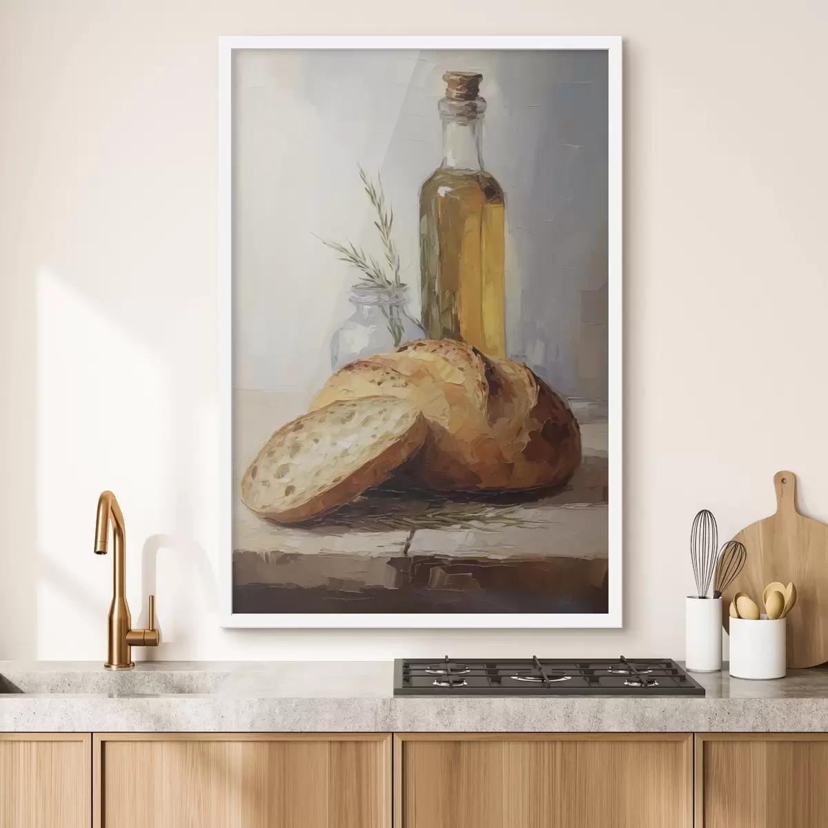 Poster Pan y una botella de aceite, pintura de imitación f46759