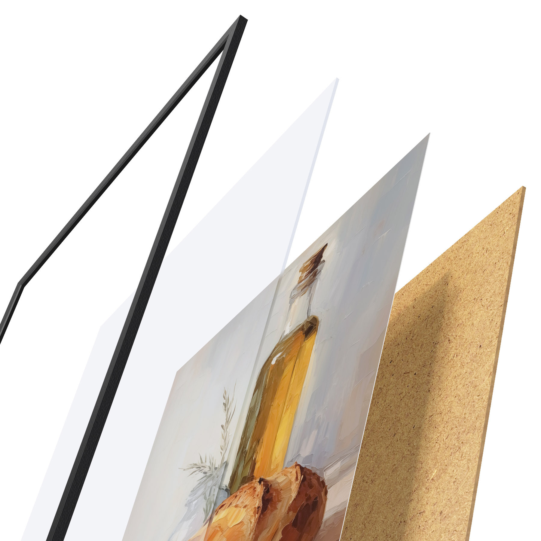 El póster consta de marco, plexiglás, imagen impresa y soporte de aglomerado. El póster puede colgarse inmediatamente en la pared gracias a los soportes de la parte posterior.