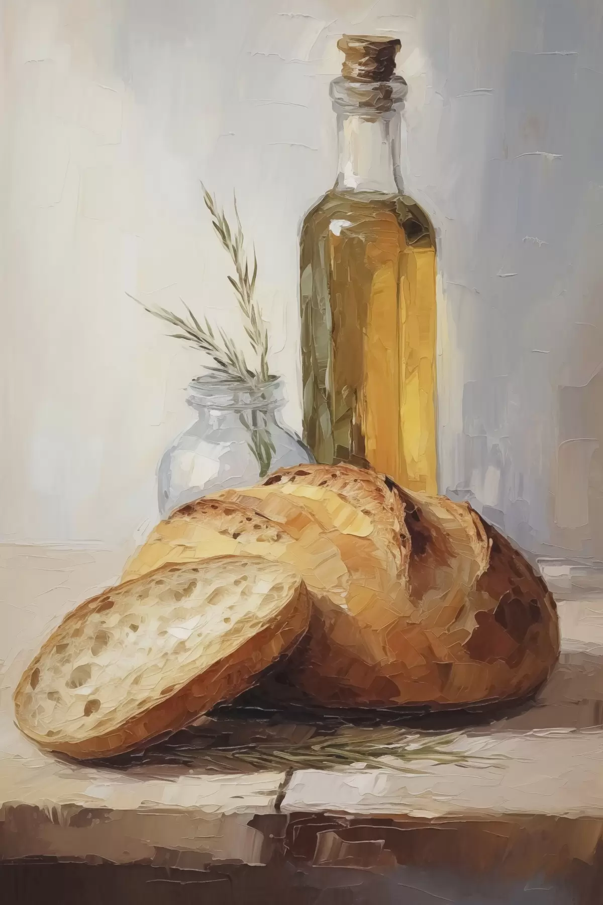 Poster Pan y una botella de aceite, pintura de imitación f46759