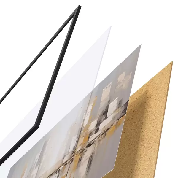 El póster consta de marco, plexiglás, imagen impresa y soporte de aglomerado. El póster puede colgarse inmediatamente en la pared gracias a los soportes de la parte posterior.