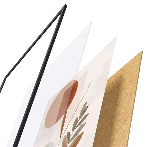 El póster consta de marco, plexiglás, imagen impresa y soporte de aglomerado. El póster puede colgarse inmediatamente en la pared gracias a los soportes de la parte posterior.