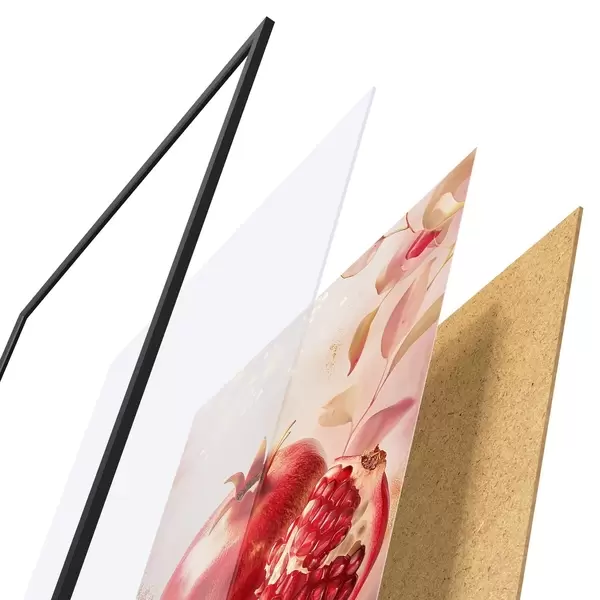 El póster consta de marco, plexiglás, imagen impresa y soporte de aglomerado. El póster puede colgarse inmediatamente en la pared gracias a los soportes de la parte posterior.