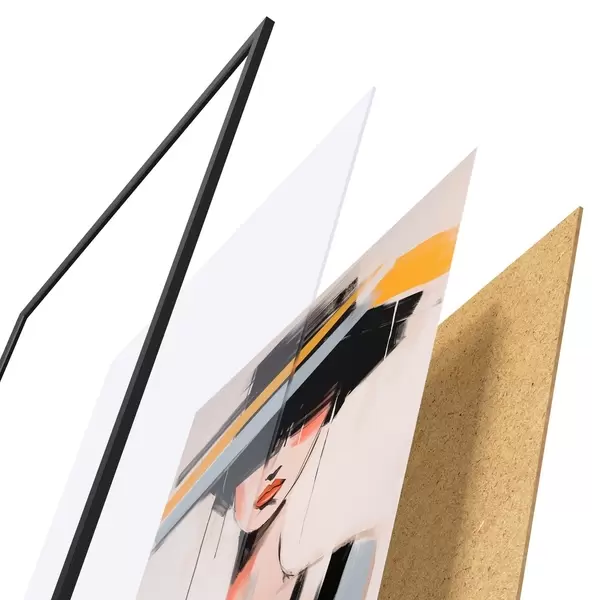 El póster consta de marco, plexiglás, imagen impresa y soporte de aglomerado. El póster puede colgarse inmediatamente en la pared gracias a los soportes de la parte posterior.