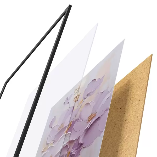 El póster consta de marco, plexiglás, imagen impresa y soporte de aglomerado. El póster puede colgarse inmediatamente en la pared gracias a los soportes de la parte posterior.