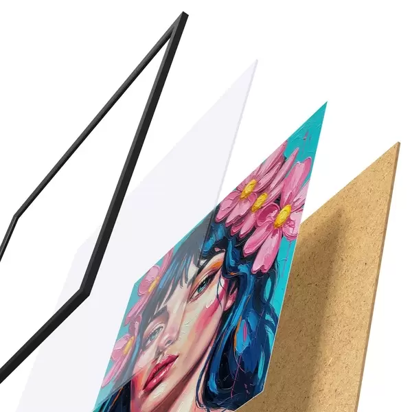 El póster consta de marco, plexiglás, imagen impresa y soporte de aglomerado. El póster puede colgarse inmediatamente en la pared gracias a los soportes de la parte posterior.
