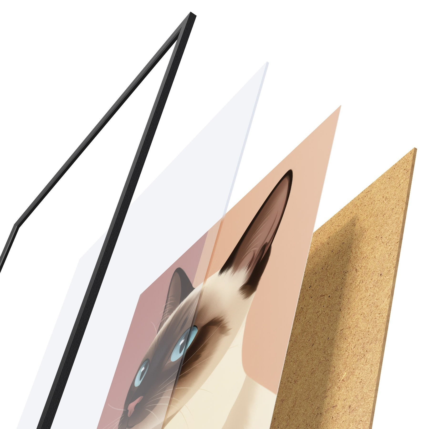 El póster consta de marco, plexiglás, imagen impresa y soporte de aglomerado. El póster puede colgarse inmediatamente en la pared gracias a los soportes de la parte posterior.