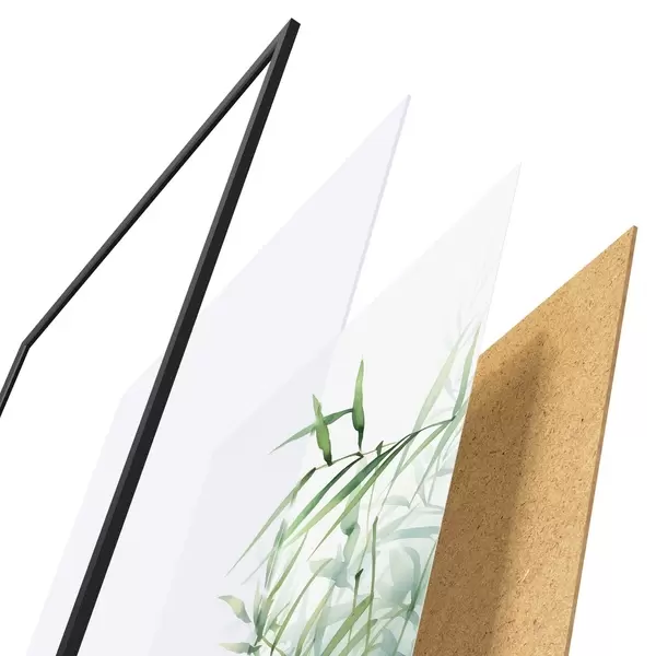 El póster consta de marco, plexiglás, imagen impresa y soporte de aglomerado. El póster puede colgarse inmediatamente en la pared gracias a los soportes de la parte posterior.