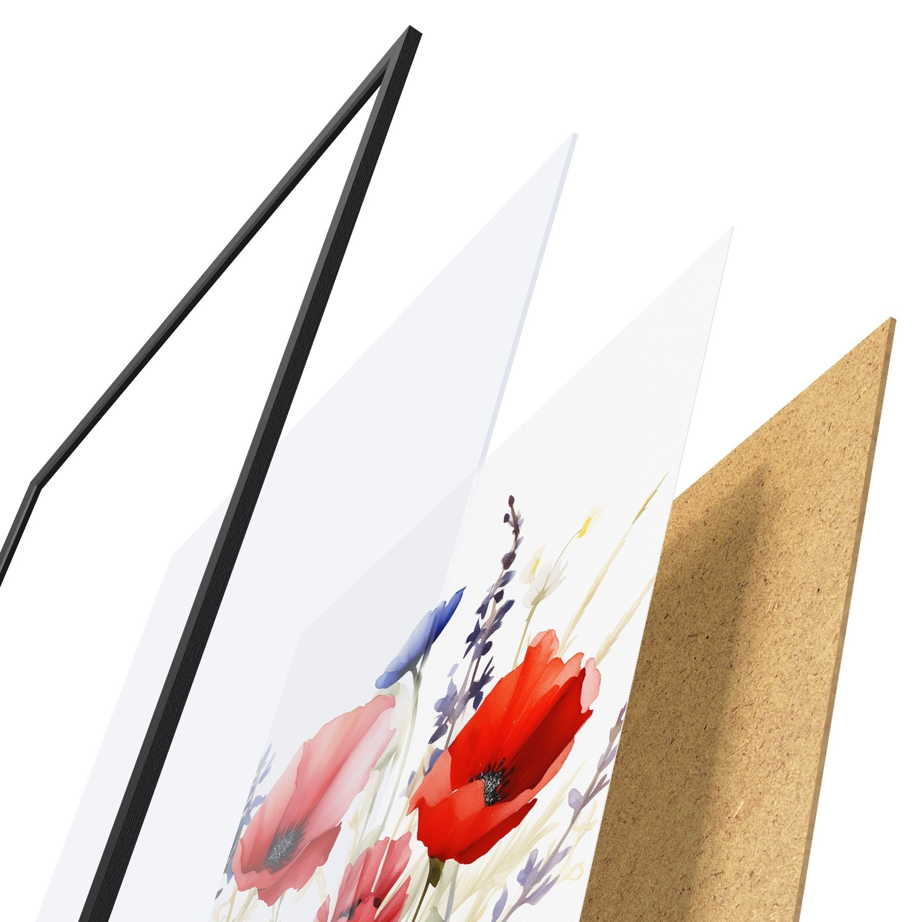 El póster consta de marco, plexiglás, imagen impresa y soporte de aglomerado. El póster puede colgarse inmediatamente en la pared gracias a los soportes de la parte posterior.