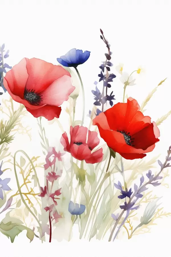 Poster Inflorescencias de amapola, imitación acuarela f46888