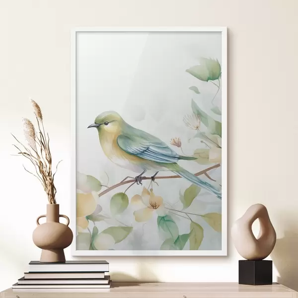 Poster Herrerillo en una rama, imitación acuarela f46892