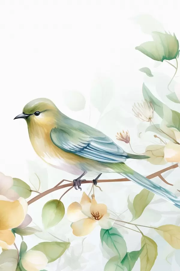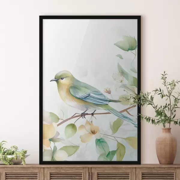 Poster Herrerillo en una rama, imitación acuarela f46892