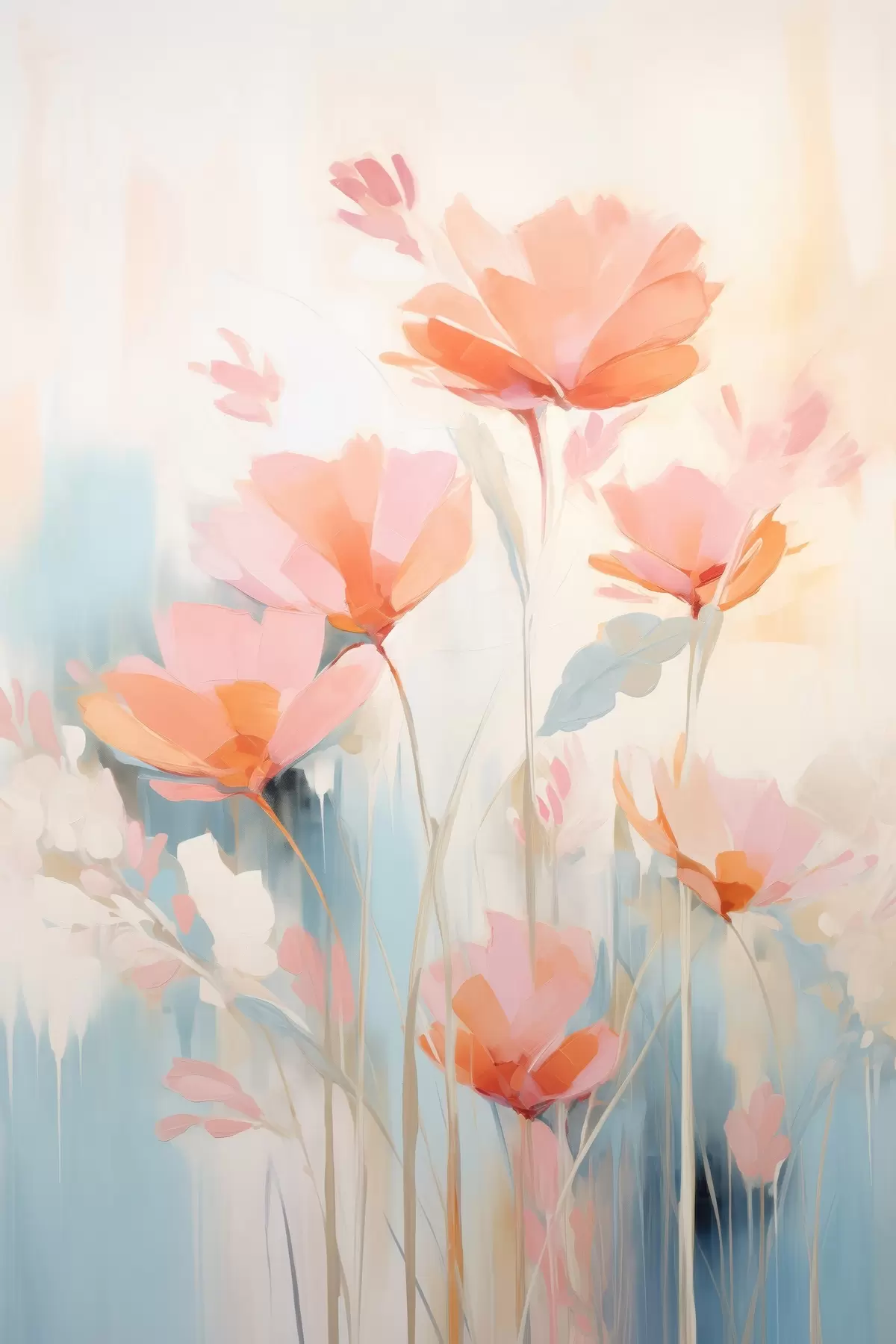 Poster Composición floral en tonos pastel con un estilo pictórico contemporáneo. f46930
