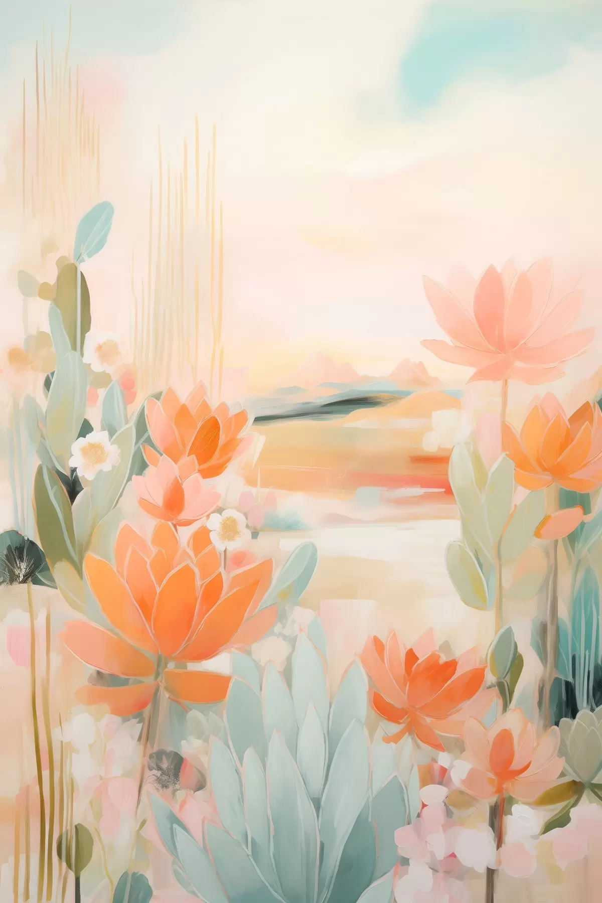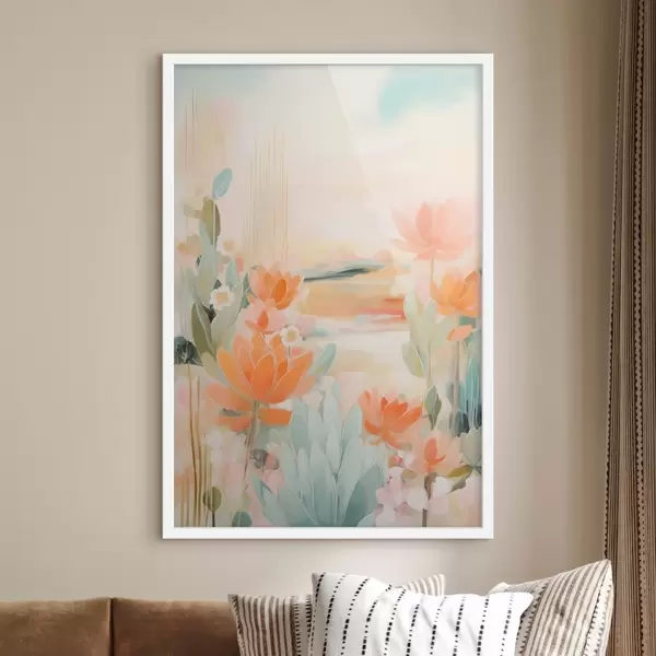 Poster Paisaje floral en tonos rosas y azules con un estilo pictórico contemporáneo. Nr f46931