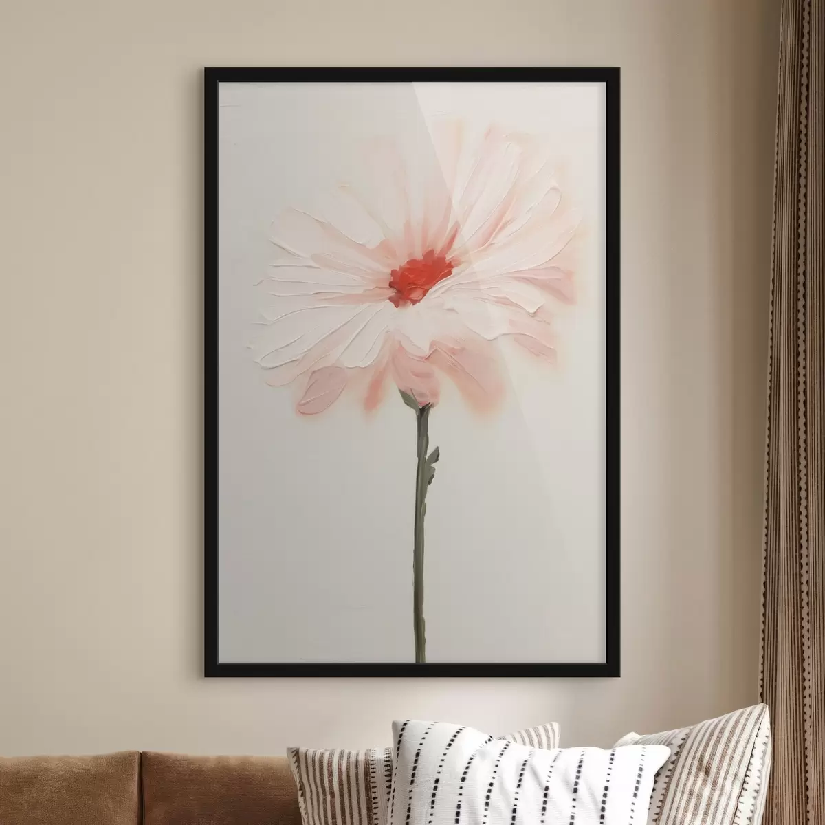 Poster Flor blanca y rosa con pinceladas expresivas en estilo de pintura al óleo. f46933