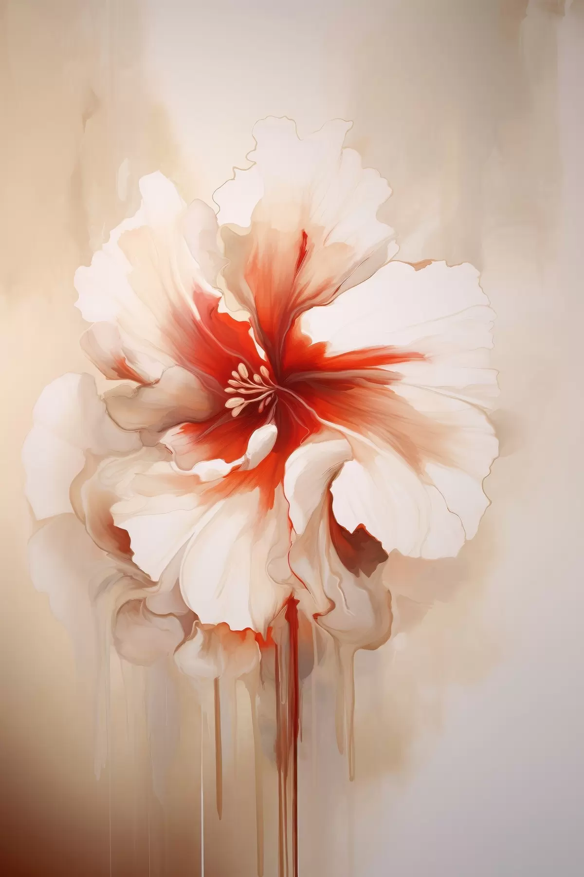 Poster Flor blanca y roja con pétalos semitransparentes y gotas de pintura fluidas. f46940