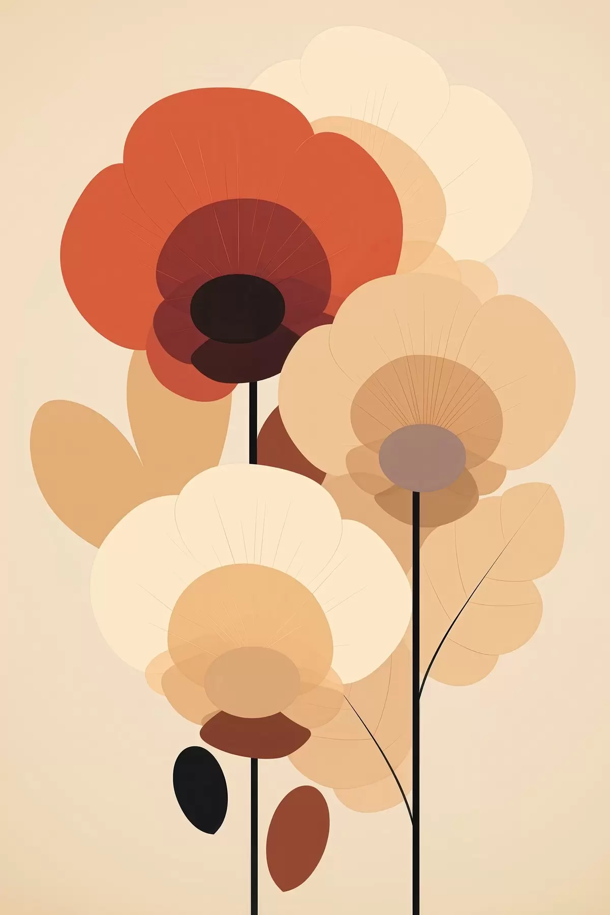 Poster Flores abstractas en una cálida paleta de tonos beige con un estilo minimalista. Nr f46942