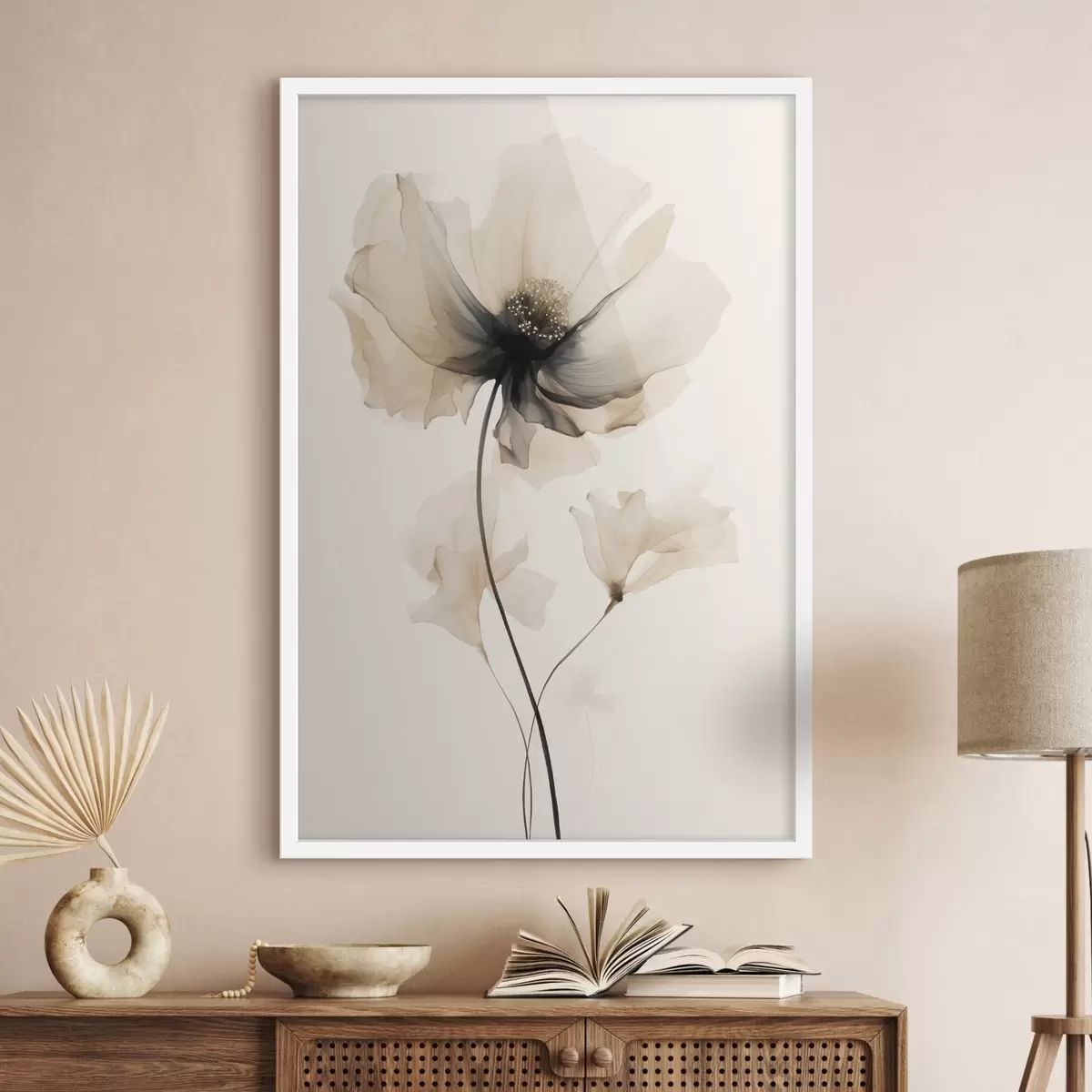 Poster Delicada flor semitransparente con un centro oscuro en estilo minimalista. Nr f46944