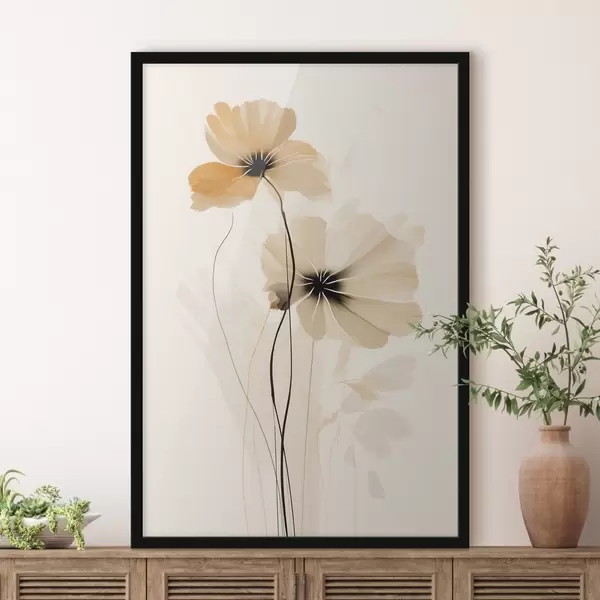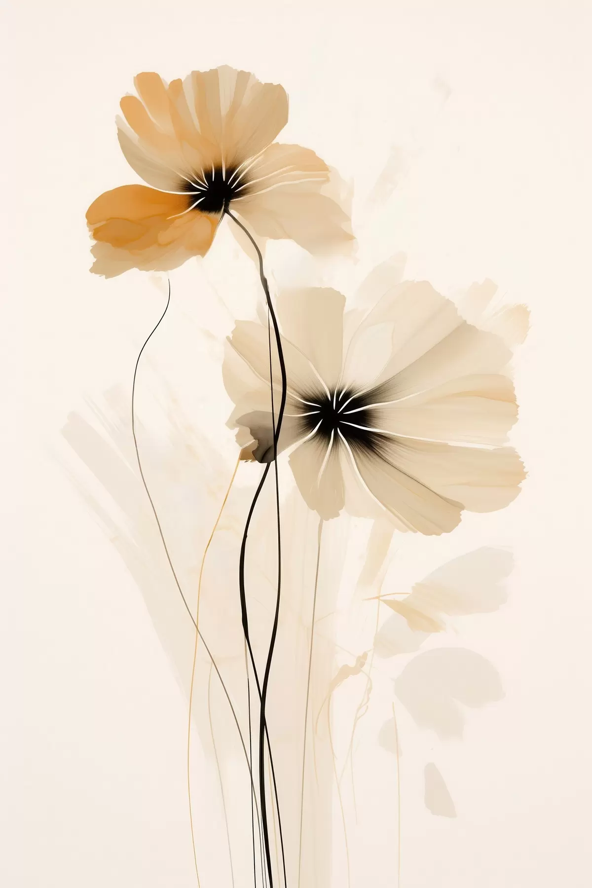 Poster Flores en una paleta de colores beige y melocotón con centros oscuros en un estilo minimalista. f46945