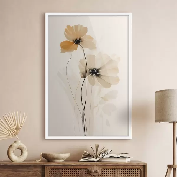 Poster Flores en una paleta de colores beige y melocotón con centros oscuros en un estilo minimalista. Nr f46945