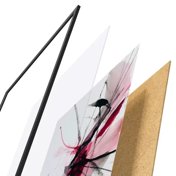 El póster consta de marco, plexiglás, imagen impresa y soporte de aglomerado. El póster puede colgarse inmediatamente en la pared gracias a los soportes de la parte posterior.