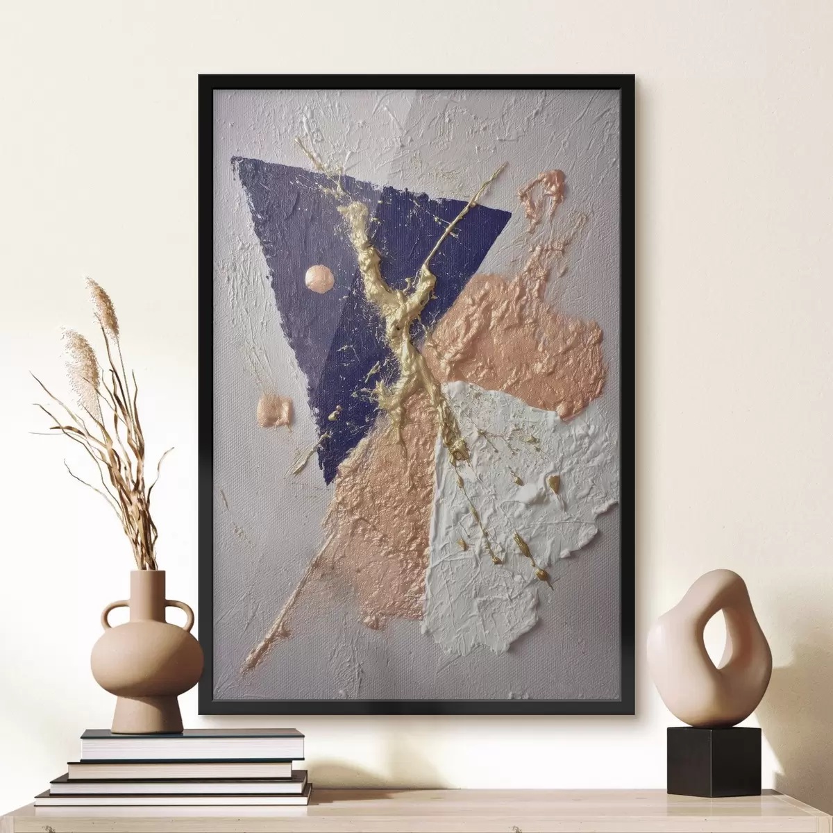 Poster Composición abstracta con un triángulo azul oscuro y pinceladas en relieve al estilo de la pintura al óleo. Nr f46953