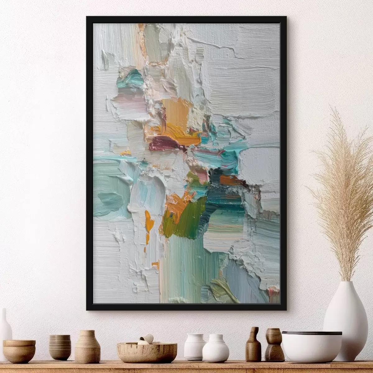 Poster Composición con detalles en turquesa y naranja al estilo de la pintura al óleo. f46958