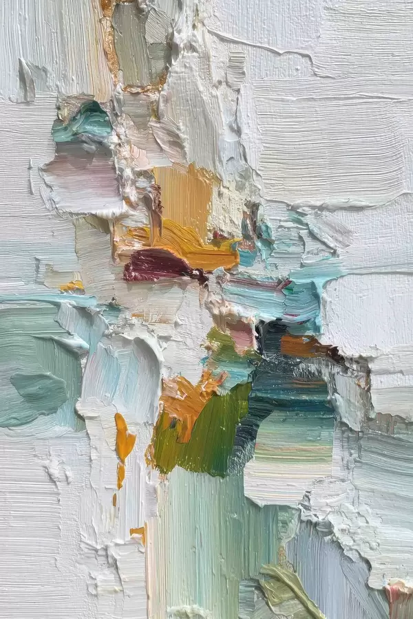 Poster Composición con detalles en turquesa y naranja al estilo de la pintura al óleo. Nr f46958