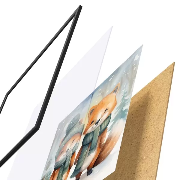 El póster consta de marco, plexiglás, imagen impresa y soporte de aglomerado. El póster puede colgarse inmediatamente en la pared gracias a los soportes de la parte posterior.