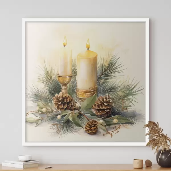 Poster Arreglo, Año Nuevo, abeto y velas f46971