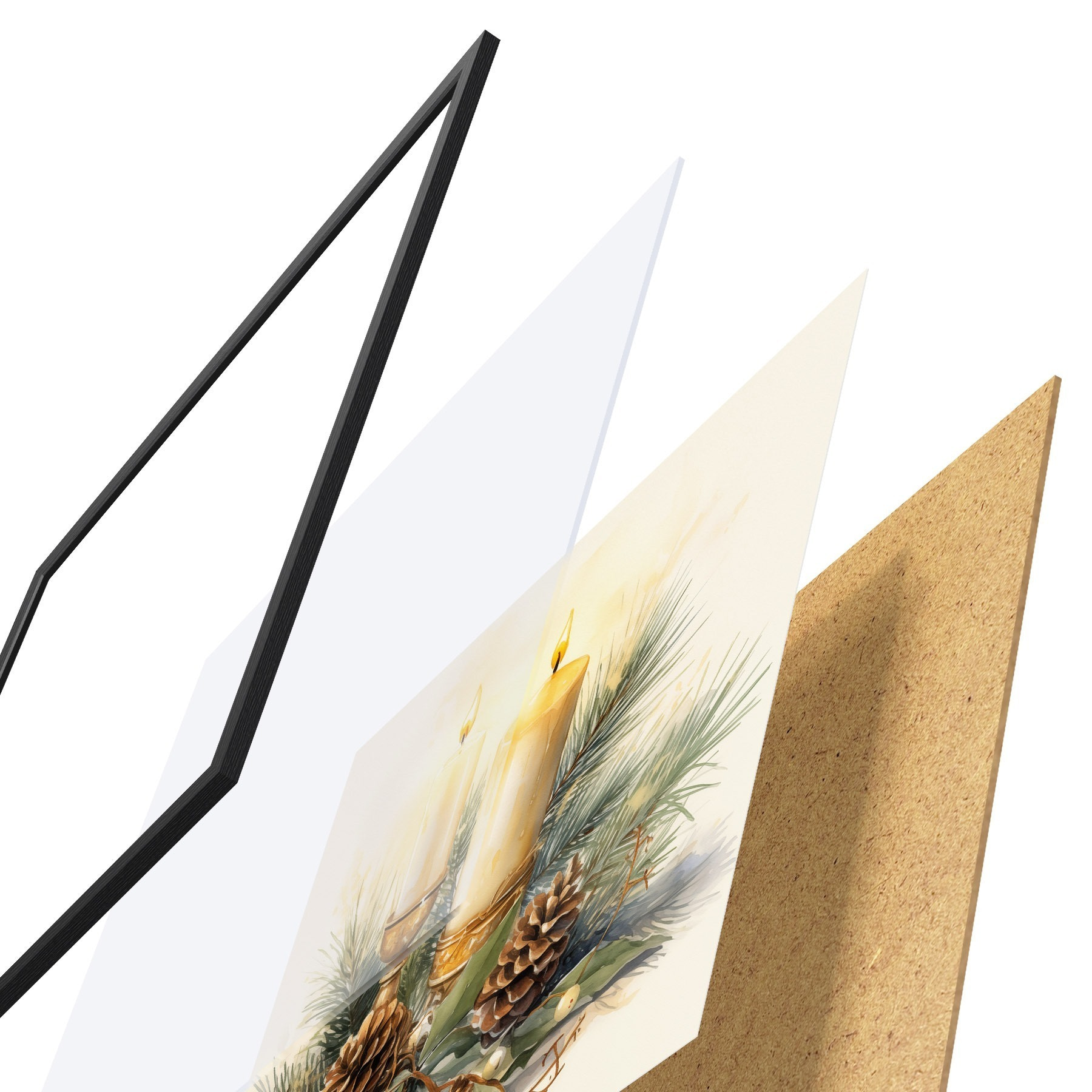 El póster consta de marco, plexiglás, imagen impresa y soporte de aglomerado. El póster puede colgarse inmediatamente en la pared gracias a los soportes de la parte posterior.
