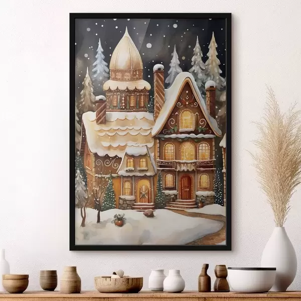 Poster Casas cubiertas de nieve en el bosque Nr f46985