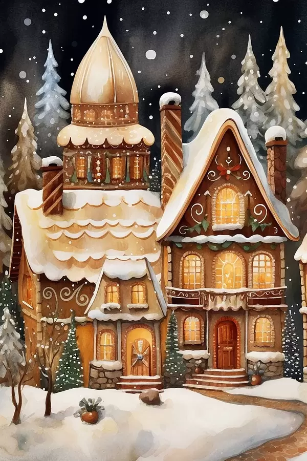 Poster Casas cubiertas de nieve en el bosque Nr f46985