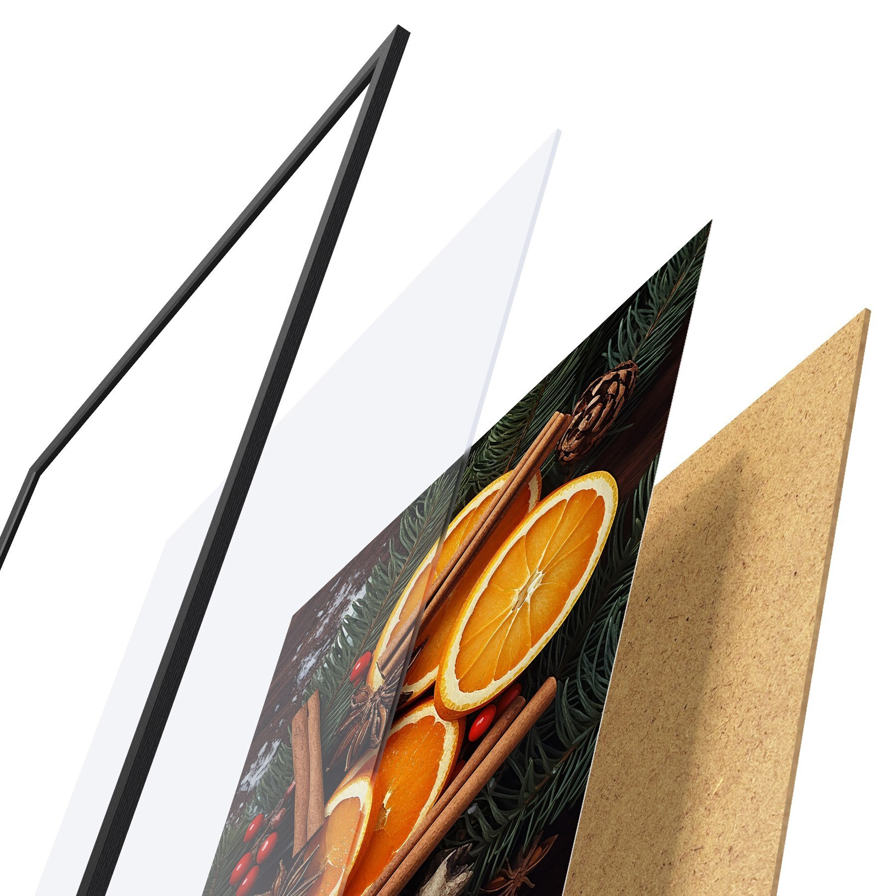 El póster consta de marco, plexiglás, imagen impresa y soporte de aglomerado. El póster puede colgarse inmediatamente en la pared gracias a los soportes de la parte posterior.