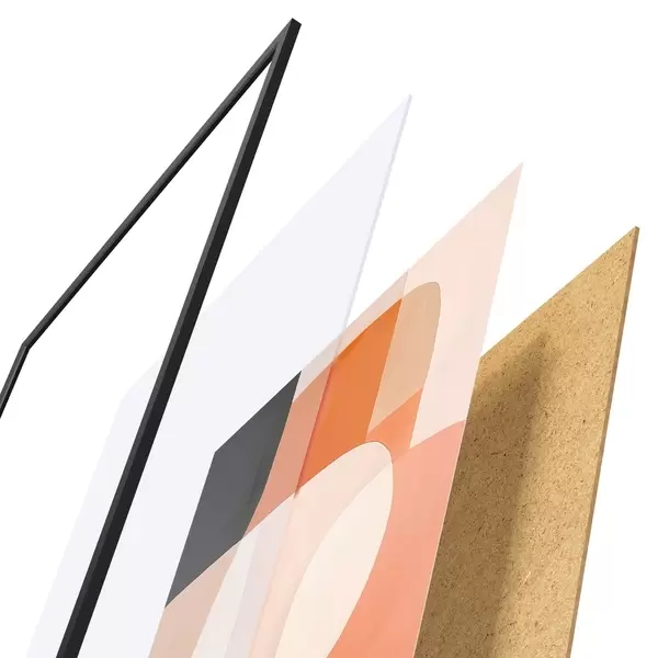 El póster consta de marco, plexiglás, imagen impresa y soporte de aglomerado. El póster puede colgarse inmediatamente en la pared gracias a los soportes de la parte posterior.
