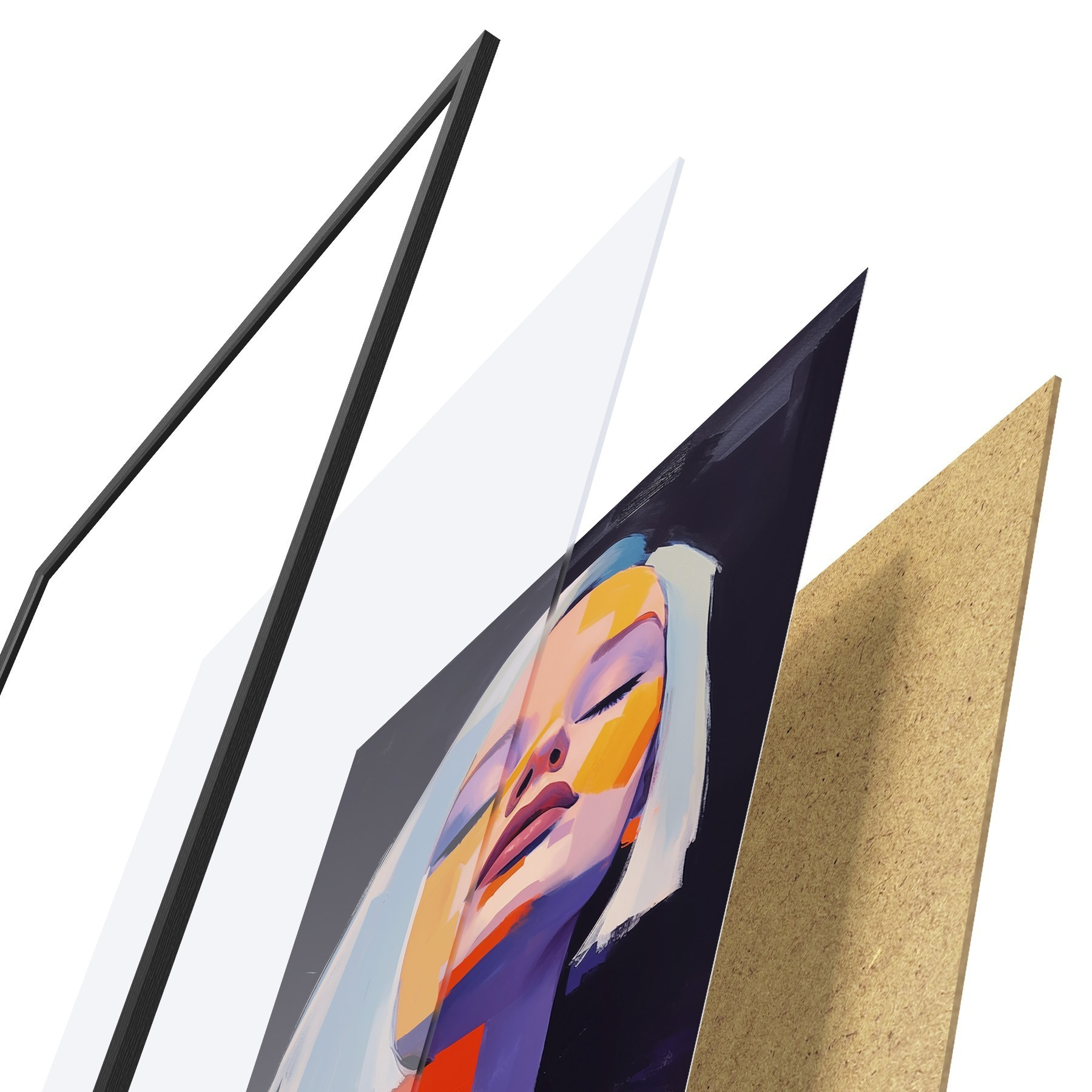 El póster consta de marco, plexiglás, imagen impresa y soporte de aglomerado. El póster puede colgarse inmediatamente en la pared gracias a los soportes de la parte posterior.