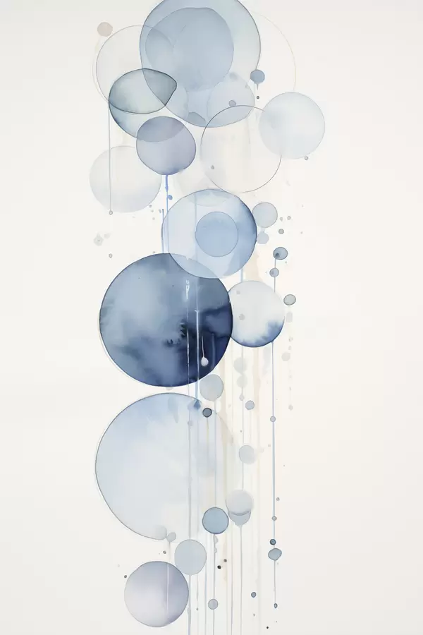 Poster Círculos abstractos con textura azul y blanca en acuarela de diferentes tamaños, sobre fondo blanco Nr f47021