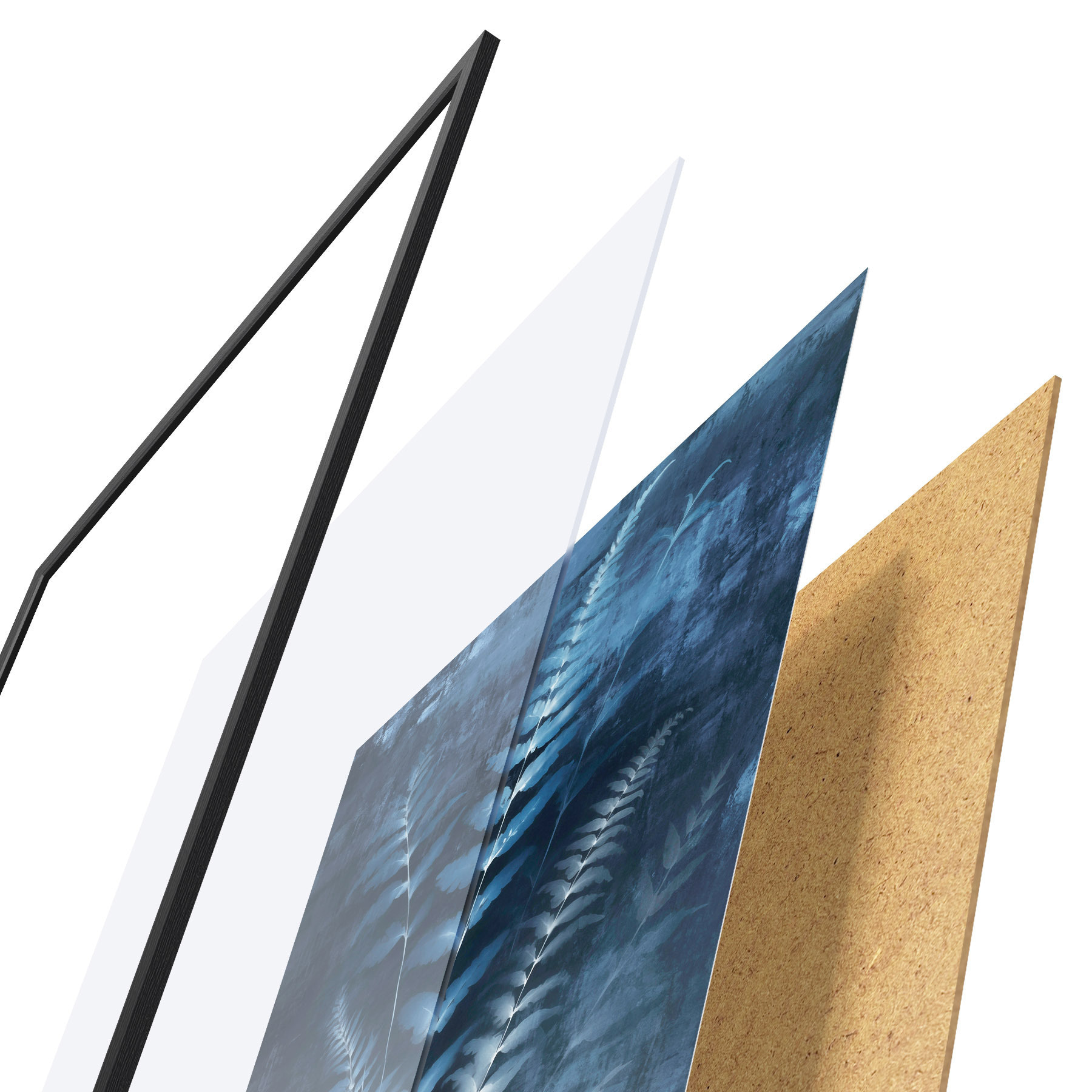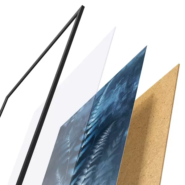 El póster consta de marco, plexiglás, imagen impresa y soporte de aglomerado. El póster puede colgarse inmediatamente en la pared gracias a los soportes de la parte posterior.