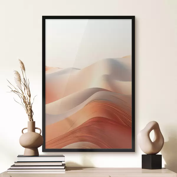 Poster Paisaje desértico abstracto con dunas de arena ondulantes en tonos cálidos naranjas y blancos. f47031