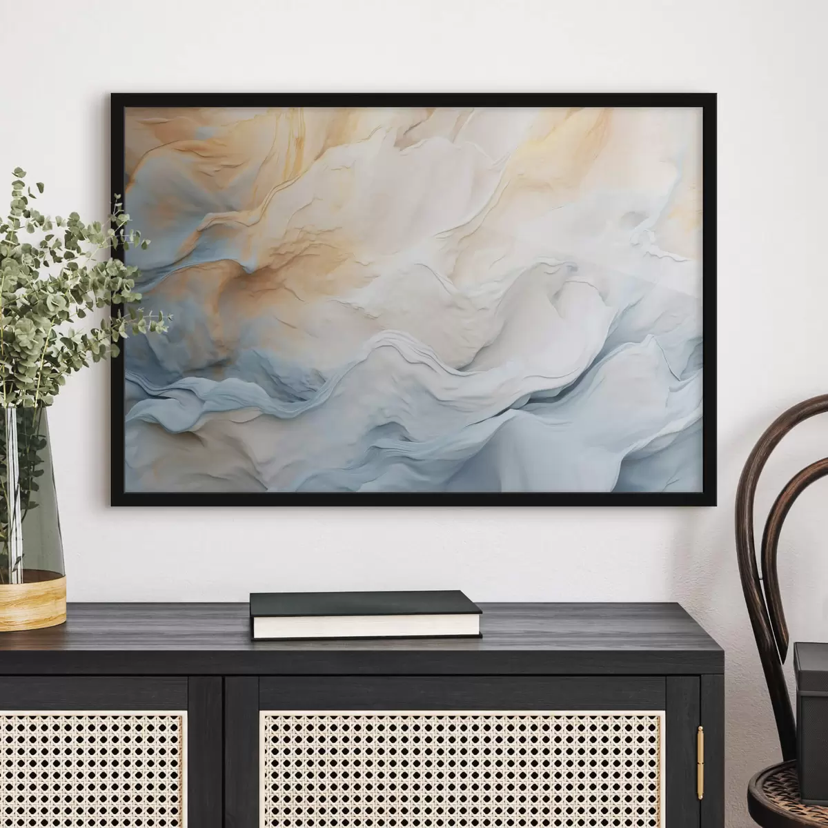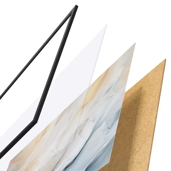 El póster consta de marco, plexiglás, imagen impresa y soporte de aglomerado. El póster puede colgarse inmediatamente en la pared gracias a los soportes de la parte posterior.
